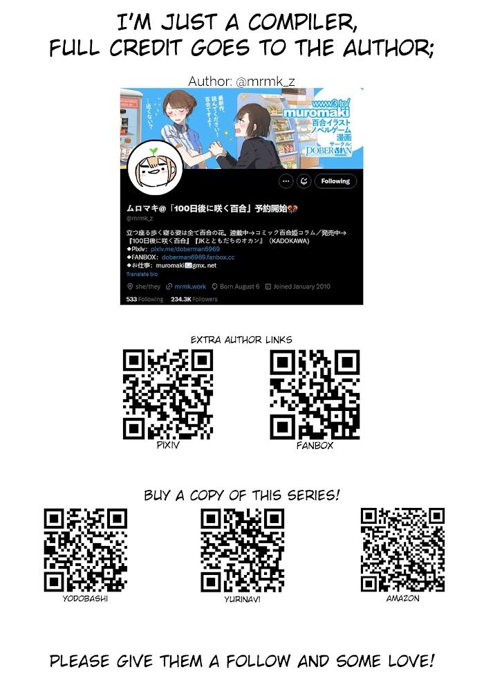 Description : 100 Days of Yuri Challenge summary is updating. Come visit MangaNato.com sometime to read the latest chapter of 100 Days of Yuri Challenge. If you have any question about this manga, Please don't hesitate to contact us or translate team. Hope you enjoy it.