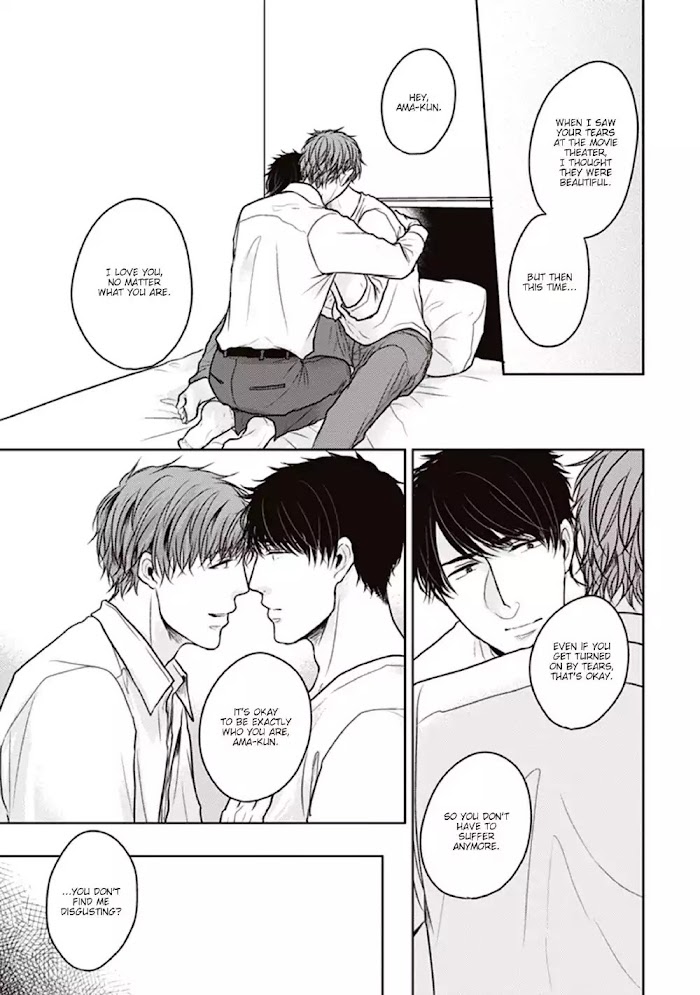 Amaike has a secret he keeps from everyone– the fact that he has a fetish for tears. One day, near his part-time job, he bumps into a man named Miharu who is dazed and crying. Unable to leave him alone, Amaike brings Miharu to his home, where he bursts into tears. At the sight of those tears, Amaike can no longer suppress his urges…