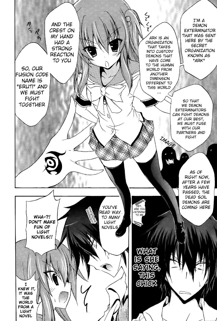 A demon exterminator is sent a school by the secret organization Ark where she finds a person compatible of becoming a fusion type fighter. (Source: MU)