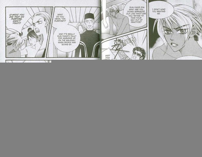 Tomboy Mi-Ha is an extremely active and competitive girl who never likes to lose to anyone. She's such a tomboy that all boys are scared of her, and that's exactly what her brother wanted and trained her to be. It took him six long years to train her into a pseudo-military style girl to protect her from anyone else. Bishonen Sung-Suh is a new transfer student who's got the looks, the determination, and attitude to sweep her off the feet. Could this male beauty be able to tame the beast? Will Miha's brother let them be together and happily ever after? If you want it you've got to Bring It On! (Source: Yen Press)