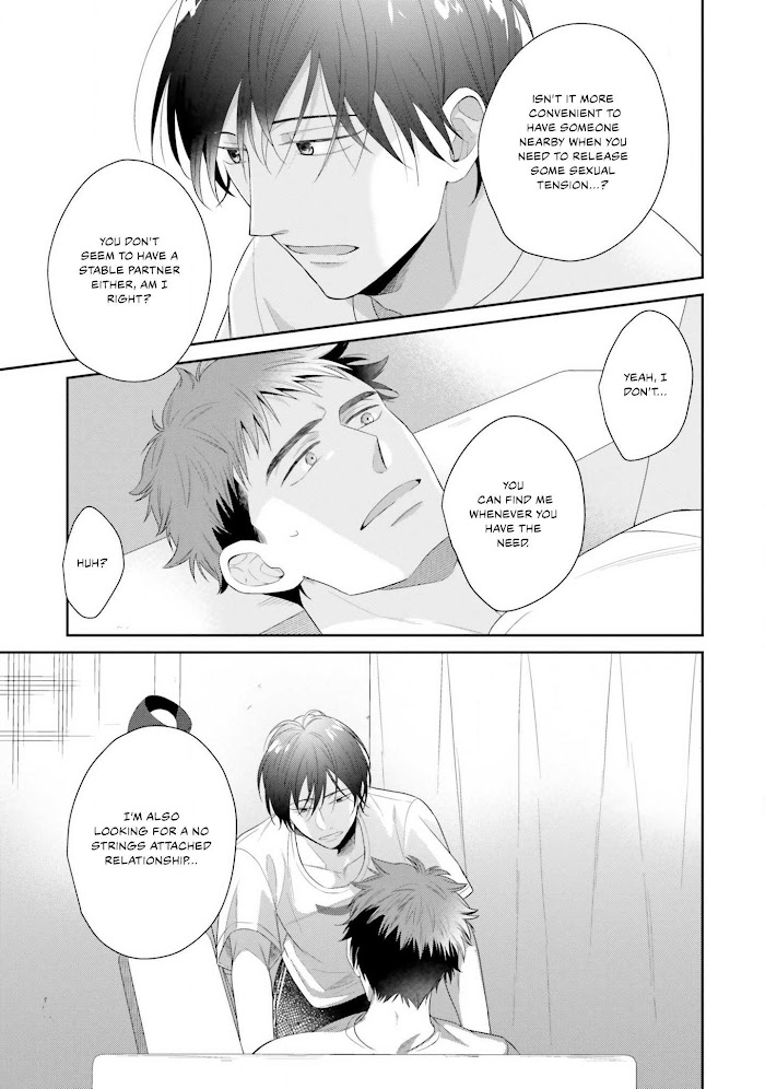 Despite his popularity with guys, Sudou Ginji, a gay writer never had a serious partner and only has had ONSs and FWBs.Now that he is almost 30, he's determined to retire from his playboy lifestyle and find someone to have a serious relationship. However, one night, his roommate Minamoto Chihiro, whom he thought to be straight asked advice on how to be skilled in gay sex?! Things should've gone well if he just gave what the other person expected from him, but somehow it didn't go that smoothly…A writer who wants to stop being a playboy x the older roommate who would like to give away his virginity. An awkward love story of a guy in his 30s with no skills when it comes to romance!