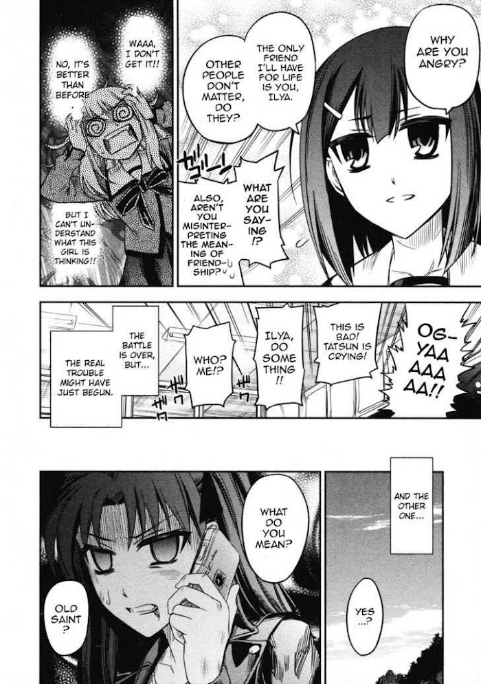 Fate/Kaleid Liner Prisma Illya manga summary: Features Illya as a main character where she's living an alternate life as a school girl. However, she is chosen by the Magical Stick Ruby and is involved in a quarrel between Rin (Kaleido Ruby) and Luvia (Kaleido Sapphire)