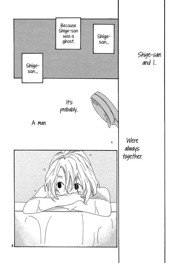 Youko has a protector in Shige-san. He has guided her, helped her, and always maintained a respectful propriety since she was a little girl. The difficulty is that Shige-san is a ghost, a poltergeist who only communicates with her by throwing small rocks to signal his disagreement or to show her what to do. But now that Youko is beginning to feel the first stirrings of young love, will Shige-san's guidance help her find her true happiness? (Source: MU)