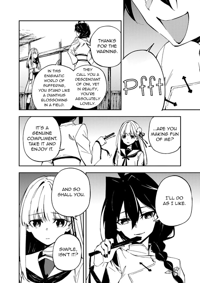 Description : The Gokumon House, a bloodline originating from hell. Within the mystery-filled ancient city of Kyoto stands their citadel; they are feared not only by the seedy underworld of sorcery, but by monsters too. Gokumon Nadeshiko, a descendant of this cursed family, is fated to devour monsters. A most beautiful girl, born from the flames of cremation; her very being brings about bad omens. However... "Nadeshiko. I see. You are as lovely as your name." Ichijiku Amana, a most peculiar, mysterious, yet gorgeous woman. Their encounter changed Nadeshiko as Amana faced her with a fearless smile. An creature lurks in the painted ceiling. Boxes packed with human sacrifice. A twisted curse upon a school. A beast who deceives humans. Haunted by a formless ghost. As the two are faced with one mystery after another, they are ultimately confronted by what they tried to leave behind. "If it weren't for you, I would've remained an Oni." An Oni with the heart of a human, and a human burdened with a corrupt soul. The bond that they form will cut the seal on this blood-soaked tale.