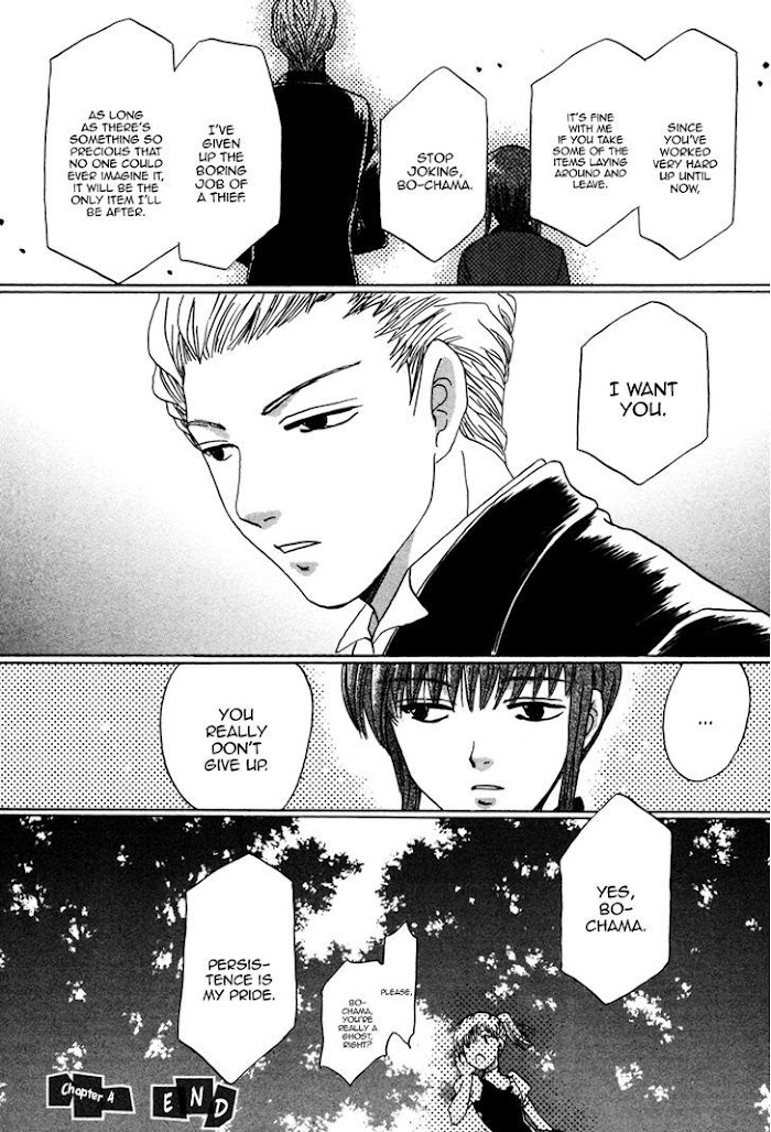 Since escaping from a special child development center, Jougasaki Nanaki has been living on the streets, surviving only by stealing. A chance encounter with someone from his past leads him to a large, but run-down mansion on the outskirts of town. There, he meets a small boy and sees him disappear through a wall right in front of his eyes. Intrigued, Jougasaki remains on the grounds to become the household's butler in hopes of finding out the boy's secret, but...?