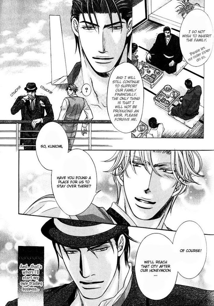 Masatsugu Hanamura and Kuniomi Takakura are both Japanese nobility and heirs to two separate Marquis families. As childhood friends and rivals, they live hedonistic lifestyles. Their pastime is a friendly competition where they place bets to see who can win their target's affection first. Then one day, Kuniomi makes a passionate confession of love to Masatsugu and...!? What will become of their life altering bet between these two beautiful men...!? A Taisho era love story! (Source: Media Blasters)