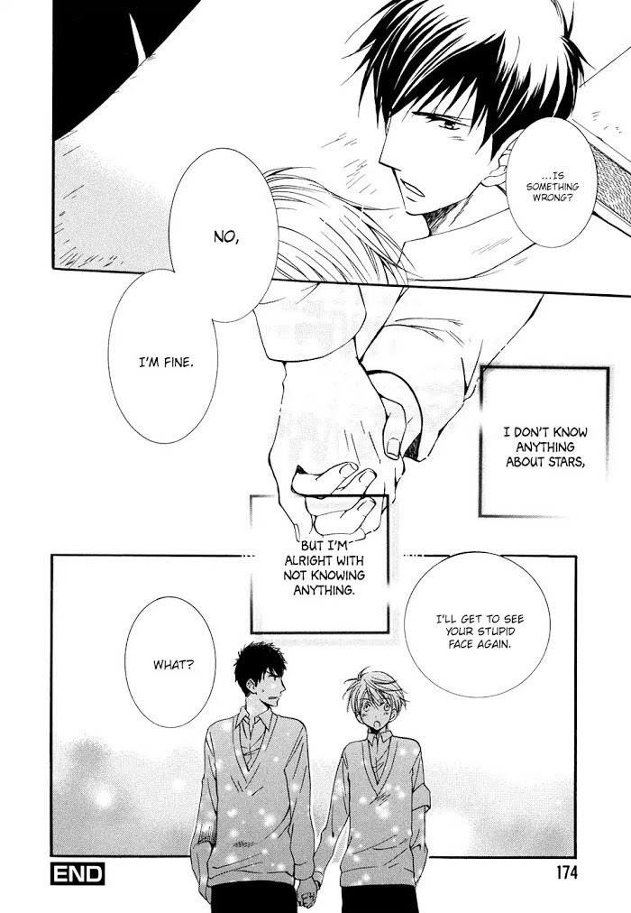 The cool and pushy astronomy club member, Takayanagi, always begs the hardworking student council officer, Kamijou, to "give them more funds for the cultural festival" but always receives the answer, "absolutely impossible!" Like cats and dogs, Takayanagi goes to pick a fight with him every day because the adorable sight of Kamijou turning red with anger makes his heart race… A cultural festival romance featuring the pushy astronomy club member vs. the tsundere student council officer! (Source: MU)
