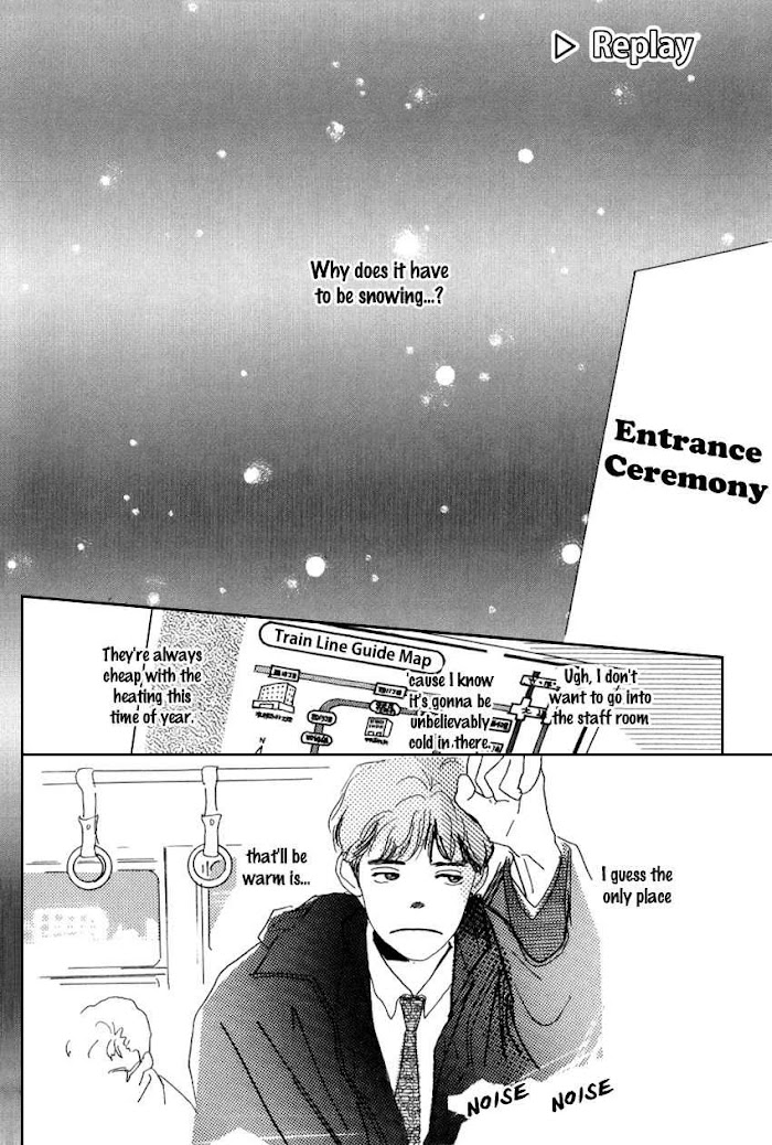 Hana, a 16 year old who's a bit of a tomboy, is dumped by her boyfriend when she moves to Sapporo after her parent's divorce. On her first night there, she comes across a young guy who is seemingly too ill to walk. He ends up collapsing on her and is quickly rushed to the hospital. As it turns out, he's Hiroto, her next door neighbor. The next day, when she goes to her new school for the first time, she finds out that he's actually a teacher and that he's the teacher of her class! With his out-going personality and friendly demeanor, he gets along with everyone, but she notices there's something a little different going on between him and Nishiwaki, a classmate of hers who the others write off as a "cold-hearted beauty." Hana always runs into him on her way to school, and as she gets to know him more, she finds herself falling for him! Things get even more messy when her boyfriend who broke up with her comes to Sapporo saying that he wants to give their relationship another shot! (Source: JShoujo Scans)