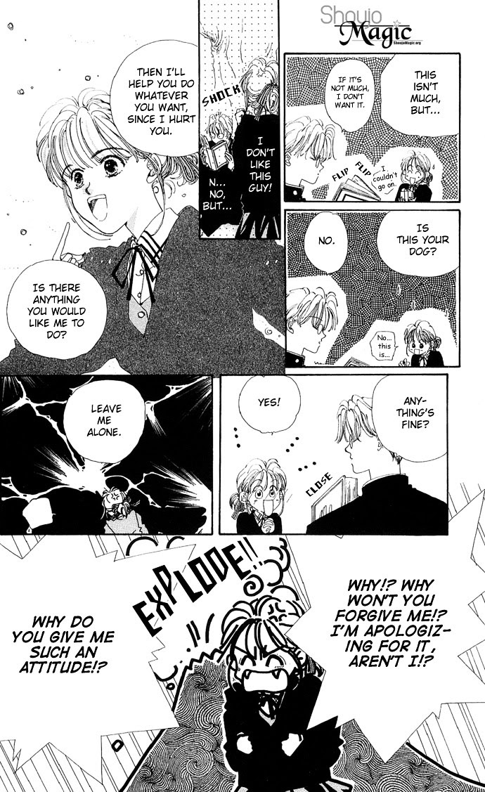Story 01: The Cupid Who Ran Off: Mayumi is a shy high school girl who watches Yamano from the other side of the fence after school; she loves the exhilarating moment when he high jumps and is flying through the blue sky. She can see it even when she closes her eyes. But is she so intent on watching Yamano-kun... that she doesn't notice that he's watching her, too? Story 02: I Can Hear the Footsteps: Shizuka's charm bracelet comes with a condition: She can have any wish she wants if she can suppress her favorite thing for two months. Her wish is to be a more grown up woman, but handsome, and surprisingly childish classmate Naoto may make that impossible. Story 03: Peter Pan I Love You: When flighty Eri accidentally injuries Takumi's hand she finds out what a sexist he is. He thinks girls are loud, spoiled, and cry easily. Eri is determined to prove him wrong. Is Takumi a jerk, or could he secretly be a nice guy? Story 04: Of Course I Can't Wait Until Nightfall: Haruka's grades have been falling, and she's pretty sure she knows the reason: Her new stepbrother and affectionate lover Tsukasa. To keep herself from being distracted, Haruka imposes a no kissing rule on Tsukasa. But he's not going to give up without a fight... Source: MangaFox