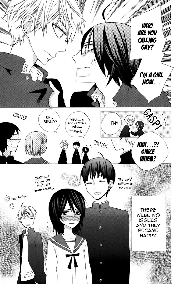Sagara becomes a girl in his second year of middle school, and has to deal with his crush on Kurokawa, a female classmate. (Source: MU) Included one-shot: Volume 2: S no Kaikoroku (Memoirs of a Sadist)