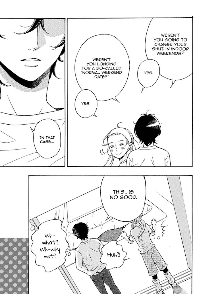 Tachibana Kayo (27) is beautiful, kind, capable and admired by everyone at work. However, she's a plain Jane homebody (hikkikomori) on the weekends, and a virgin, to boot. Her neighbor and junior colleague at work, Shindou Kei (25), finds out, and tells her she should master having fun on the weekends in a fashionable way. From his lectures, their relationship starts turning into one where they often go out together?!