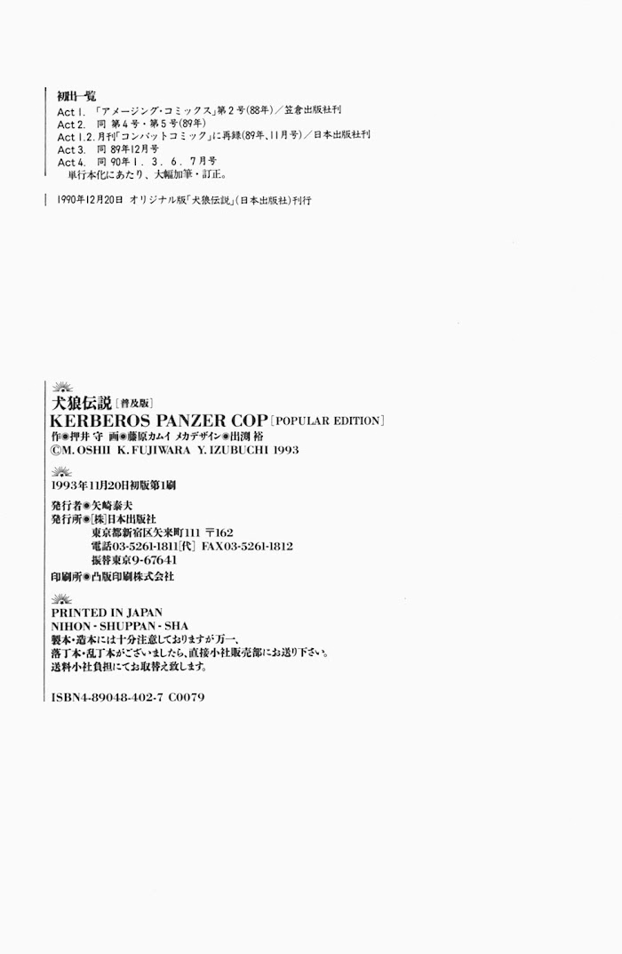 Kerberos Panzer Cop manga summary: Years after the country defeat and occupation period, Japan is still recovering. Although they are on the road back to mass industrialization and prosperity, strong handed economic and political policies have turned many areas into dilapidated slums. Anarchists and anti-government student protesters have taken up arms, stirring up violent social revolution riots. In order to combat this growing threat, the Japanese government has nationalized a division of the police, creating the Capital Police Organization (CAPO). The CAPO consists of hard-trained panzer troopers carrying heavy firearms and wearing special armor suits called Protect Gear, this specialized unit is feared by anti-government groups, criminals and civilians alike.
