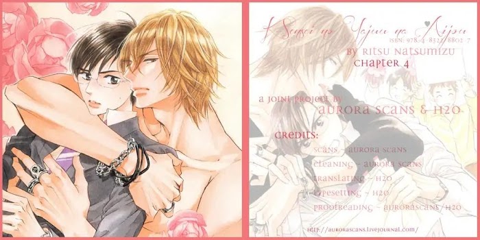 Popular erotica writer Kaji "K" sensei's glamorous appearance is only rivaled by the fantastic rumors surrounding him. Like how one of his best selling novels was based on a relationship with a high school student... or how 2 of his model sex friends got into a cat-fight in the middle of a highway... or how he has threesomes during his nocturnal writing sessions! At least these are the things that go through editor Kobayakawa's head when he sees his celebrity charge, that and the one where K sensei sent three editors to the hospital?! Yet, while taking photos for a magazine interview and watching K sensei work with such professional focus Kobayakawa realizes that the outrageous rumors may be just that. That is until Kaji pushes him down on the sofa to "reward" him. Thus begins the hunt of the herbivore editor and his carnivore author. (Source: MU)