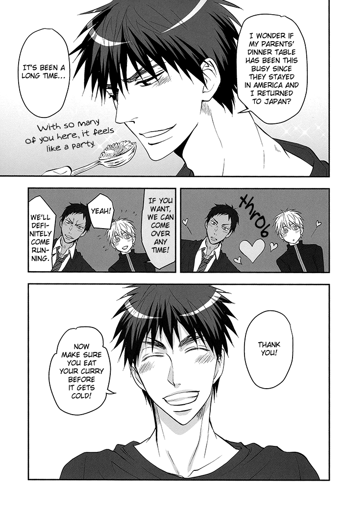From Silver Lining:Pairing: Aomine x Kagami x KurokoAomine and Kuroko decide to go on the offensive when Kagami doesn't seem to recognize how deep their feelings for him are.