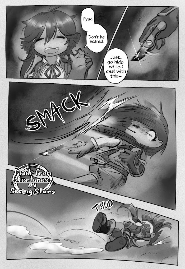 Description : The Abyss. A giant pit filled with gigantic cave system that goes down to extreme unknown depths, filled with wonderful and terrifying treasures and creatures never before seen. Only the bravest of the delvers are able to see what horrors truly lie in wait at the bottom. People are familiar with the great story of Made in Abyss, following a young orphaned cave raider, a mysterious amnesiac robot, and a tragic narehate. But, what if something went differently? What if one single decision changed these unfortunate childrens' story?Up on Orth a pair of friends, Fyuo and Kwazan, a newly promoted red and blue whistle start experiencing a few strange things happening to them. Fyuo is having dreams of an unfamiliar figure and Kwazan decides to help him figure out the cause of these nightmares using notes she stole from another delver. But, what they find waiting for them only a few hundred meters down, will change their lives forever.