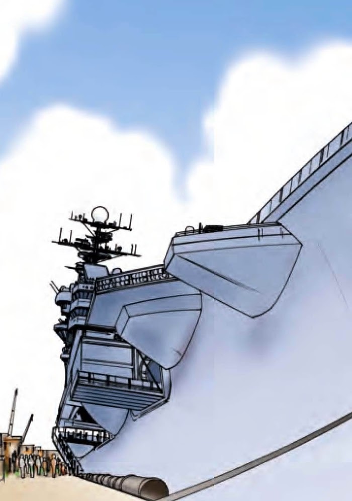 An educational manga about the first nuclear-powered aircraft carrier deployed to Japan by the U.S. Navy.
