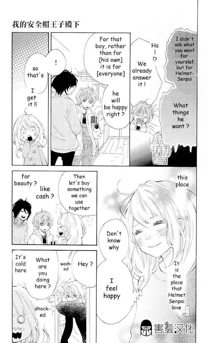 Makoto is a girl, but because her name sounds like a boy's, the school mistakenly placed her in the boy's dorm. On her way to the dorm, she encounters a guy with hair that looks like a helmet. Turns out, this Helmet-senpai is one of her dorm mate! Makoto starts to fall in love with Helmet-kun because he is kind. His helmet hair is covering his face all the time so Makoto really wants to see his face. But, how will she find out more about Helmet-kun with the other two members? One is a cheapskate and the other, a narcissist. What will happen to Makoto's love?! (Source: MU) Included one-shots: Kocchi Muite yo Darling, Atashi ga Suki nano wa