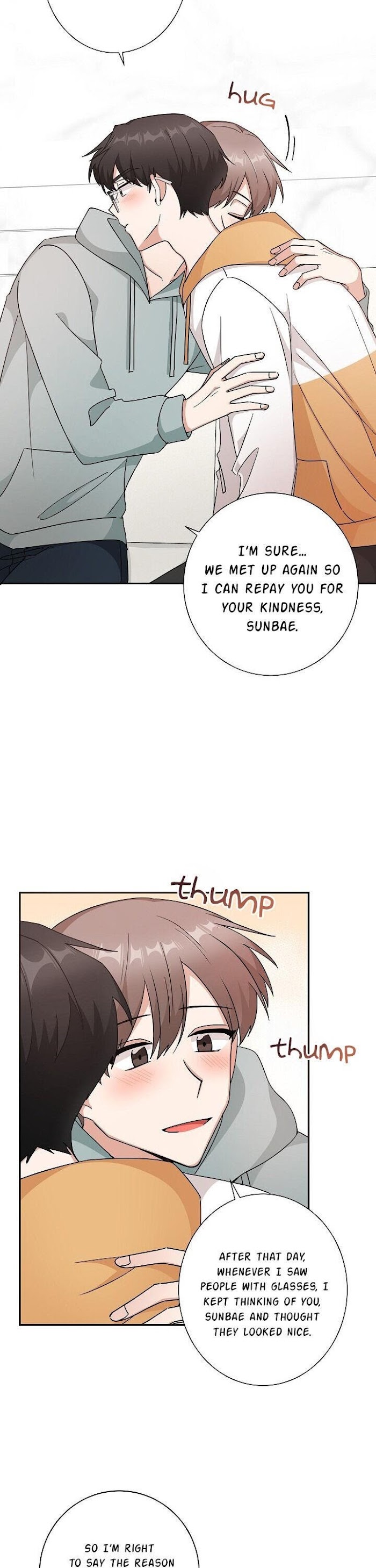 Scanlation by Cinnamoroll Army "I like that sunbae who looks good in glasses!!!" Sungbin, who has a glasses fetish, has a one-sided crush on his sunbae, Ahn Gyunghoon, who looks good in glasses. (Ahngyung in korean means glasses ) Gyunghoon mistakes Sungbin to be a stalker as he suspiciously lingers around him. The moment Gyunghoon throws Sungbin out, a drunk Sungbin confesses his feelings. To Sungbin who clings onto him saying he likes sunbae who looks good in glasses, Gyunghoon gives a heatbutt but….