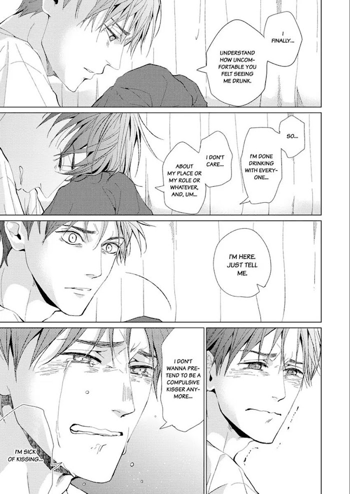 Average... the word that Tatsumi has been tormented with from his childhood all the way up to college, and he’s developed an inferiority complex. In a desperate attempt to reinvent himself, he acts as a “compulsive kisser” ever since he got drunk. In a drinking party with his club, Kuga, one of the most popular guys there, catches Tatsumi’s eyes. Noticing Kuga’s glance, Tatsumi runs to the bathroom feeling strangely self-conscious, where he ends up coming face to face with Kuga. Tatsumi wants to avoid the awkward tension and makes for the door, but Kuga stops him. “Why am I the only person you don’t kiss?”Profile image - attached with this email