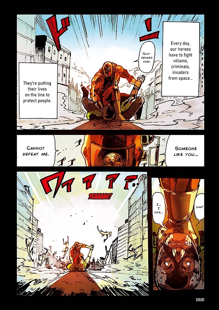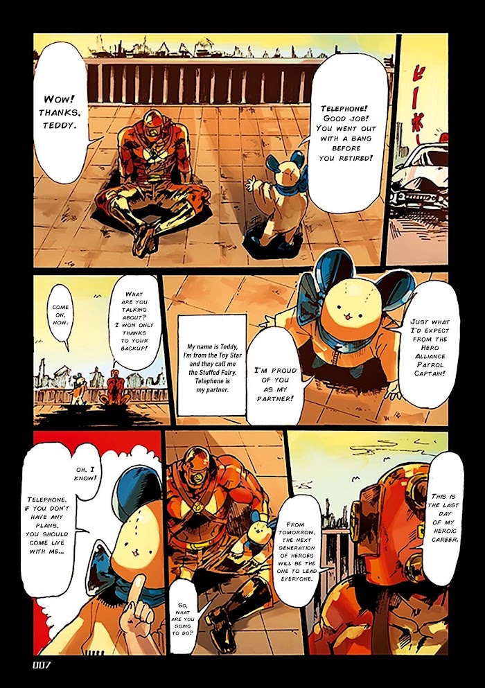 In a world where heroes protect peace at all cost, the retired hero "Telephone" has a shocking revelation...! This is a Superhero gag comedy from an author who loves American comics.