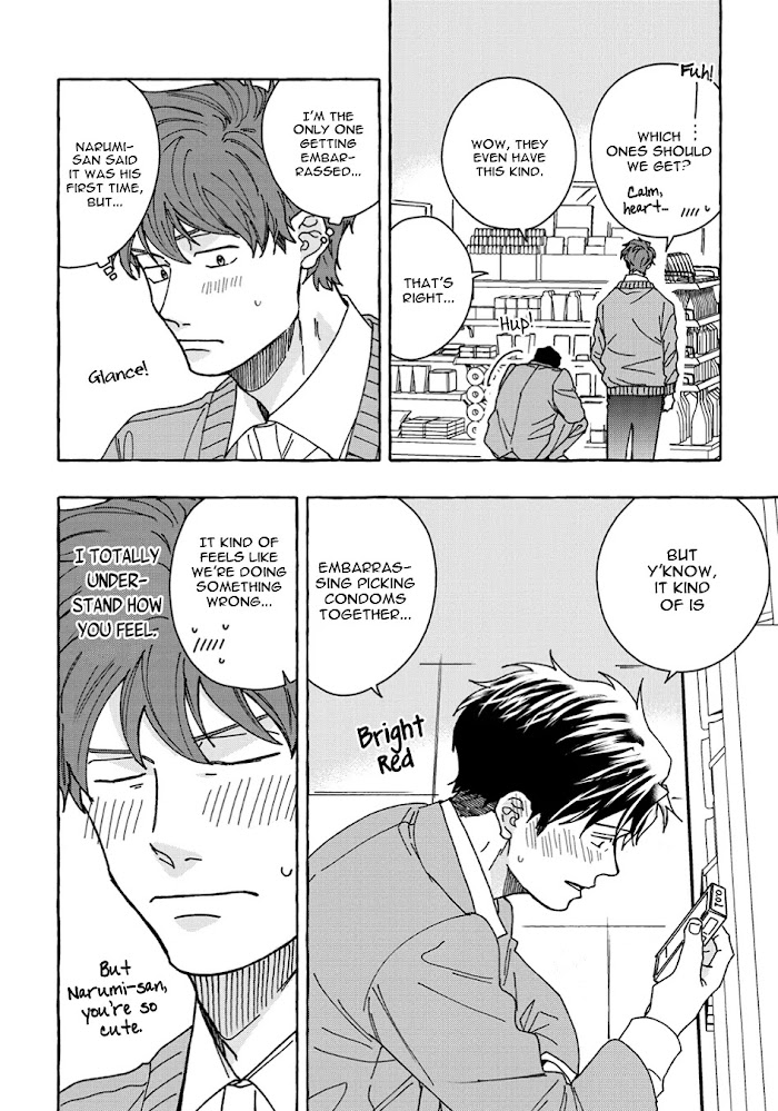 Recently divorced gay company man, Narumi, visits a cafe he used to be a regular at prior to his marriage. There, cafe employee Kida confesses that he has feelings for Narumi, having been comforted by Narumi’s words four years ago. Due to past trauma, Narumi has become timid in love, but when Kida proposes, “Won’t you try falling in love with me?” their love trial begins! An obedient younger doggy-type x innocent alpha’s bittersweet, too cute, pure love begins!