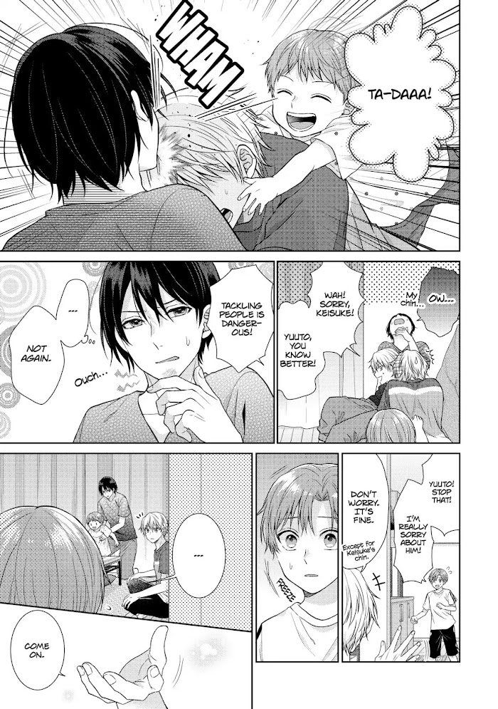 Two junior college students will become fathers today!In the summer of their third year at university, Keisuke and Rei start raising children as their fathers despite not being married! Keisuke doesn't have many relationships with other people, and his only best friend on campus is Rei, a handsome and popular guy who is kind to everyone. Keisuke was the only close friend that Rei could talk to about his true feelings. However, Keisuke, who had fallen in love with Rei, was planning on confessing to him if the time was right, even though it was an unrequited love. One night, small children were in trouble at a convenience store. Rei says, "I can't just ignore them!" and the two boys end up taking care of the children, who don't want to go home.
