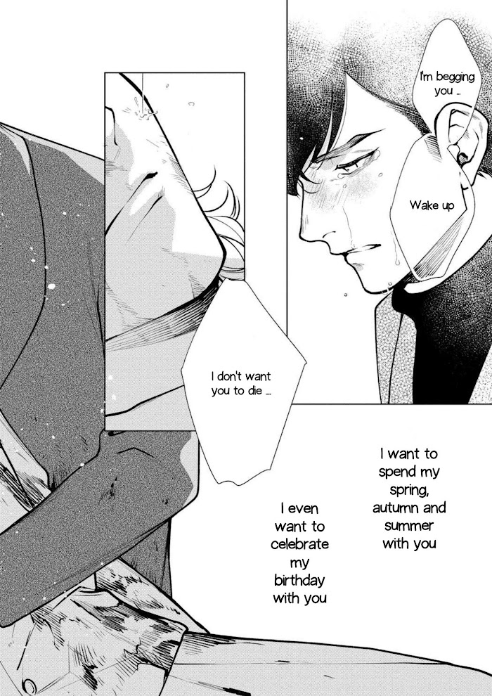 Since childhood, Akihito has been convinced of his own worthlessness. One day, as he's on the verge of giving up on life altogether, a stranger steps in to save him: Kazushige, a vampire who has been living alone for a long time. Akihito is touched by Kazushige's actions and begins to visit him frequently, but after that initial moment of kindness the other man always treats him coldly, attempting to drive him away at any possible moment. But Akihito will not be deterred, for he has finally found something that may lend meaning to his existence. (Source: Fundash Yaoi)