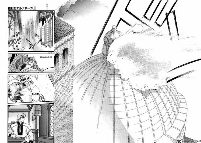 The land in ELNA SAGA is called Gimrey, and supposedly in the far past, before magic became a part of every person, a great monster had swooped down from the north and ravaged the world. Fanning great gusts of destructive magical wind, it reduced nearly everything to empty wasteland before a knight appeared to challenge it. Bearing a sacred sword and shield which repulsed magic, this knight finally struck the monster down after a tremendous battle. But this creature would not die, and as it lay immobile, the wind poured forth from its wounds unrelentingly. With the last of his strength, the knight planted his sword high atop the mountain where the battle had been fought, so that it would shield a part of the land from the wind. This was the beginning of Gimrey, and the reason why everyone is born with innate magic. As time passed, people began to fight over fertile ground. ELNA SAGA begins right before the outbreak of yet another war, and tells of a princess named Elna. Born without any magic whatsoever and as such being the only person who can actually touch the sacred sword guarding Gimrey, she becomes a pawn used by her kingdom to threaten other countries with destruction. A rival kingdom's assassination attempt turns rescue, however, when the ones behind this plot reveal that they have no qualms about killing Elna as long as they can maintain a facade using a lookalike. With the help of her would-be assassin, who is drawn to her innocence and compassion, Elna journeys to define herself and stop a terrible war that her country has started. The first thing one notices is the richness of the world in which this series has been set. The ideas behind ELNA SAGA are drawn loosely from Nordic culture and mythology and the story, people, and names all bear a medieval Northern European flavor. There are no gods or non-human races, but Valkyries, Berserks, and the world tree Yggdrasil make their appearance in one form or another, and the castles and towns evoke nostalgic memories of old storybooks. (Source: MU)