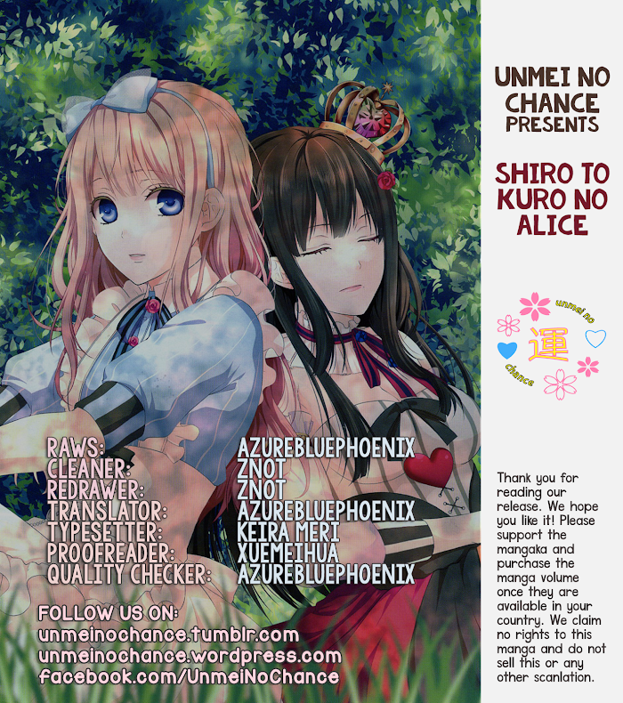 Shiro to Kuro no Alice manga summary: Based on an otome game from Otomate. "Airi" had been living her normal, peaceful life in the White World. "Luna" had been ruling the Black World as the Queen. One day, a coup d'etat rose in the Black World and the two girls were swapped-- Airi to the Black World, and Luna to the White World