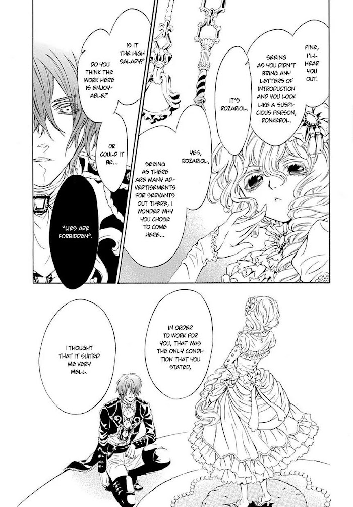Rozariol, who was looking for a master to serve, meets the daughter of the Dewberry household, Snowbell, and becomes her servant. "You must not tell lies." This is the only rule that the servants must follow. However, Snowbell often tests her servants on that condition, thus the cruel "judgement" begins. (Source: AQUA Scanlations)