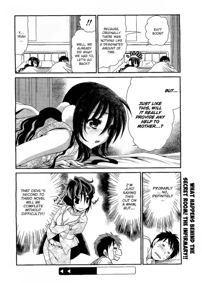 After his happy-go-lucky lovestruck parents suddenly decide to go on an amorous traveling adventure, Yuki is shuffled off to live with one of his dad's old friends. He knows very little about his new living circumstances, save that his dad's friend is an author with three children. Something seems a little off about the girl who's sent to meet him, the fidgety and overly anxious Aya, but he doesn't fully understand what's going on until he arrives at the house. Yuki, who has had very little to do with women thus far in his life, is now set to live in a house with four of them. The head of the house is actually an author of erotic novels, and she habitually forces her three daughters into embarrassing sexual situations. How will Yuki cope with his new life? (Source: MU)