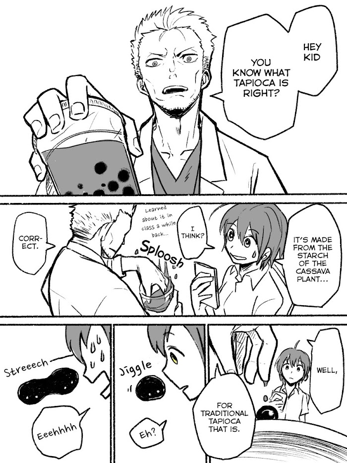 A stranger teaches a girl about a new breed of tapioca.