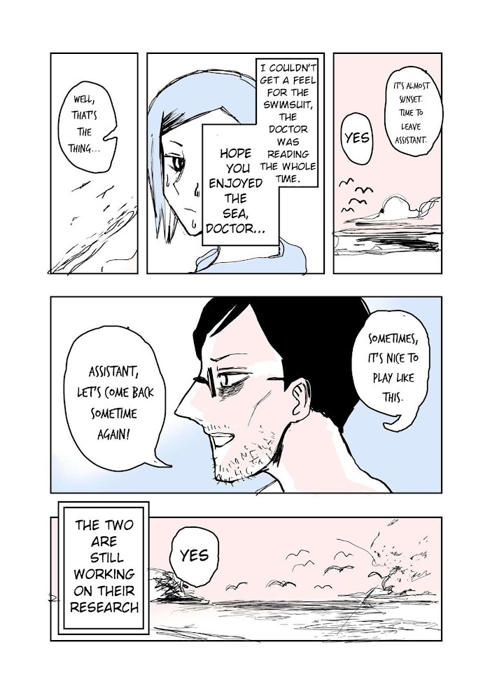 Description : A story about a professor and his assistant, working hard on their research every day. While clumsily hiding pursuit of their mutual affection for each other, they go back and forth on growing close and drifting apart, creating a perfect sense of distance in this strange laboratory romantic comedy!---(https://shonenjumpplus.com/episode/10834108156683040362)
