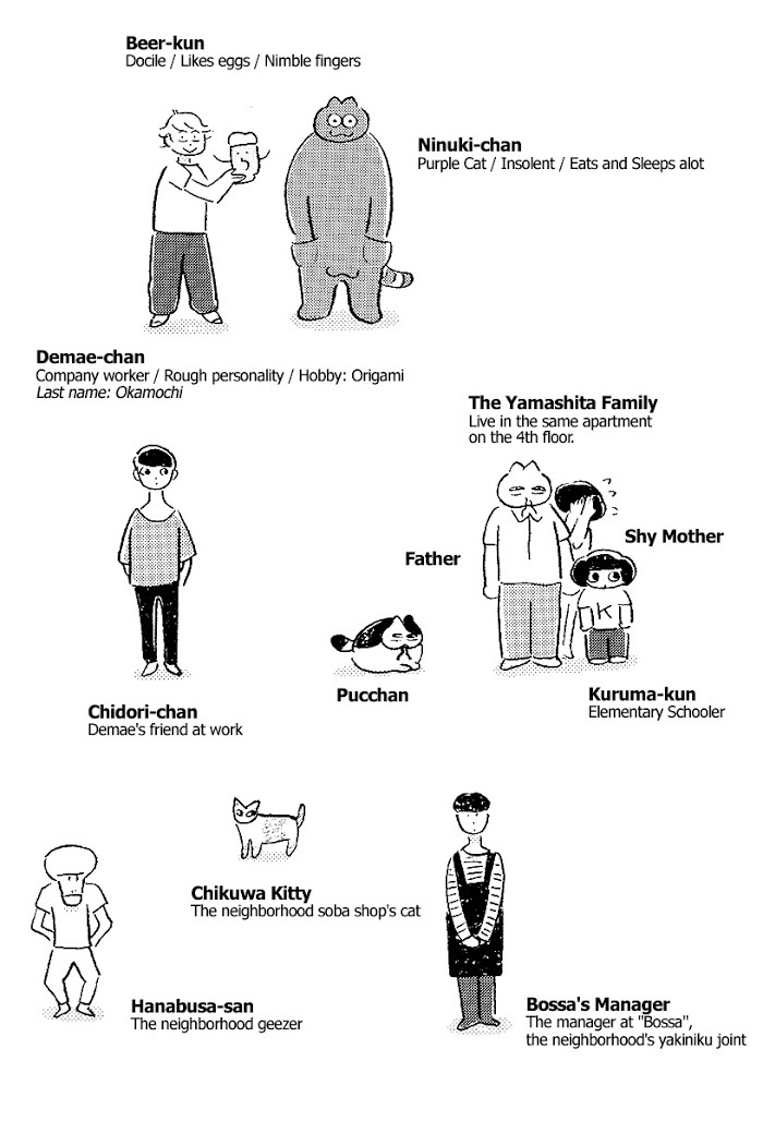 Wait Up for Ninuki Beer's Catering! manga summary: The story of a woman who lives with her purple cat and a talking beer mug.This story is about summer, catering, drinking, and living in Osaka